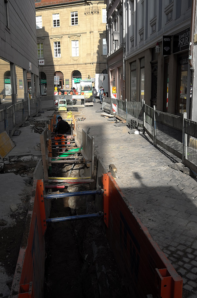 Bauen im Bestand in der historischen Altstadt von Bamberg mit extremen Verkehrsverhältnissen, schlechter Zugänglichkeit und extrem vielen Bestandsleitungen